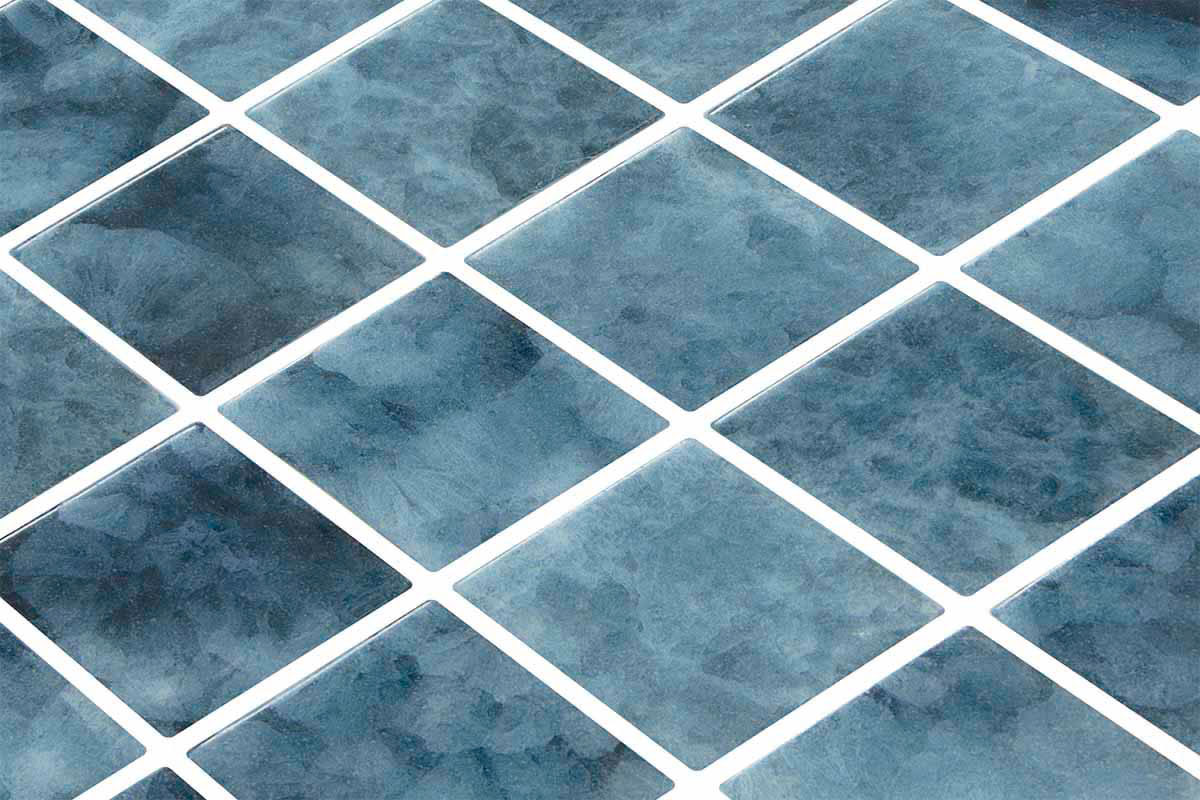 Glass mosaic, 50x50 mm, in intense blue with a gloss-matte finish. Designed for pools with personality, it combines durability and contemporary style. From the PENTA CRYSTAL series.