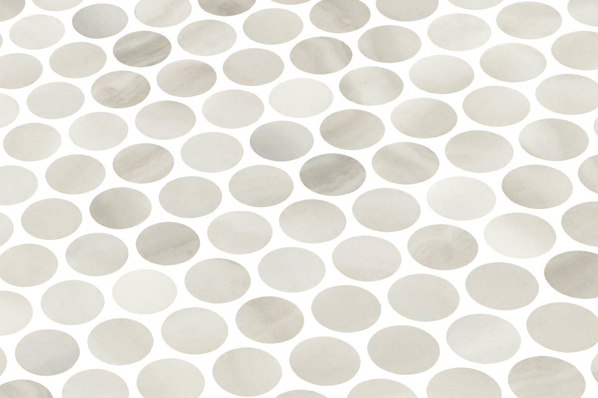 Glass mosaic, 19 mm, in light grey with a gloss-matte finish. Perfect for residential floors or exterior walls, a unique design inspired by the natural elegance of onyx. From the PENNY ONYXA series.