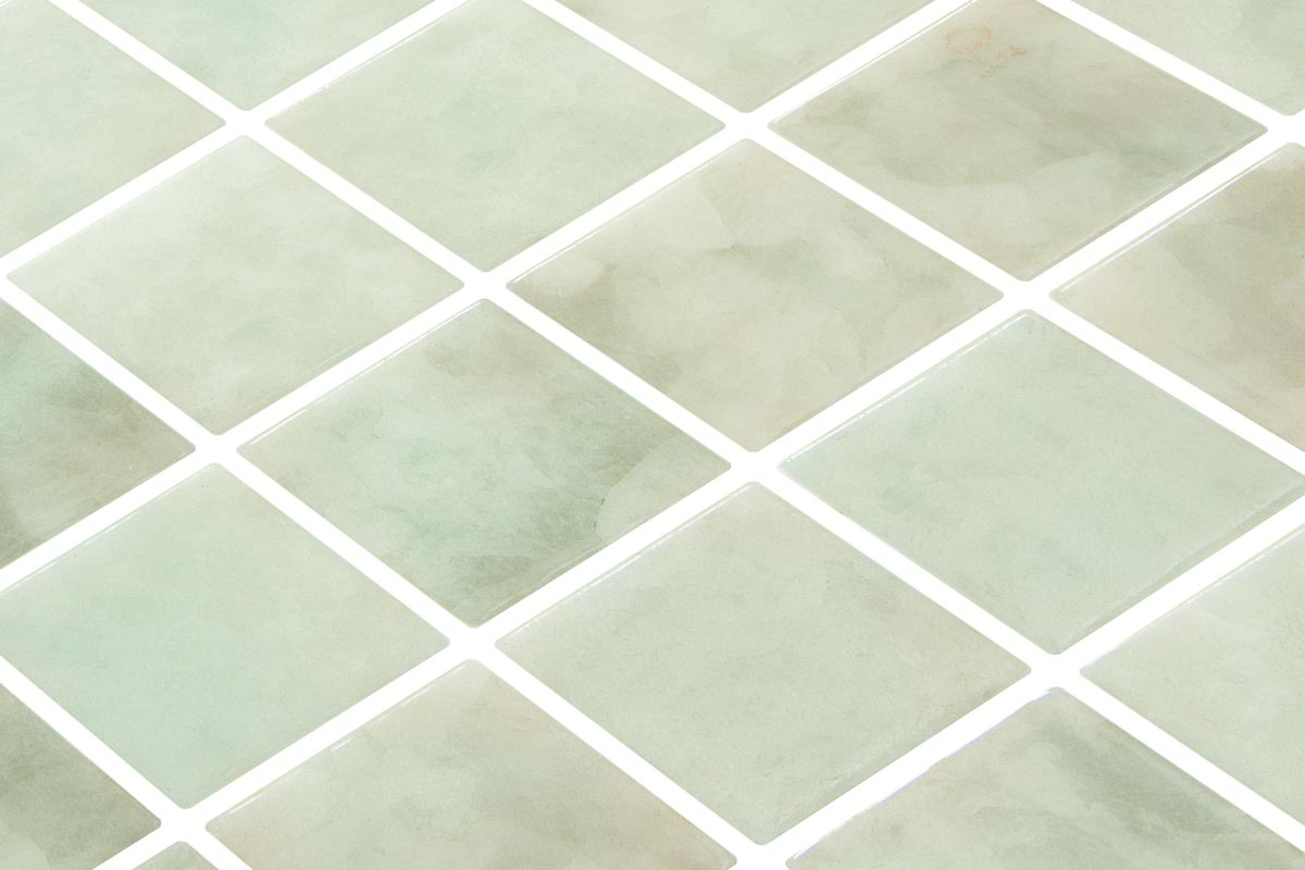 Mosaïque en verre, 50x50 mm, en beige avec une finition brillante-mate. Parfait pour les piscines résidentielles, un design unique inspiré du craquelé du verre artisanal. De la série PENTA CRYSTAL.