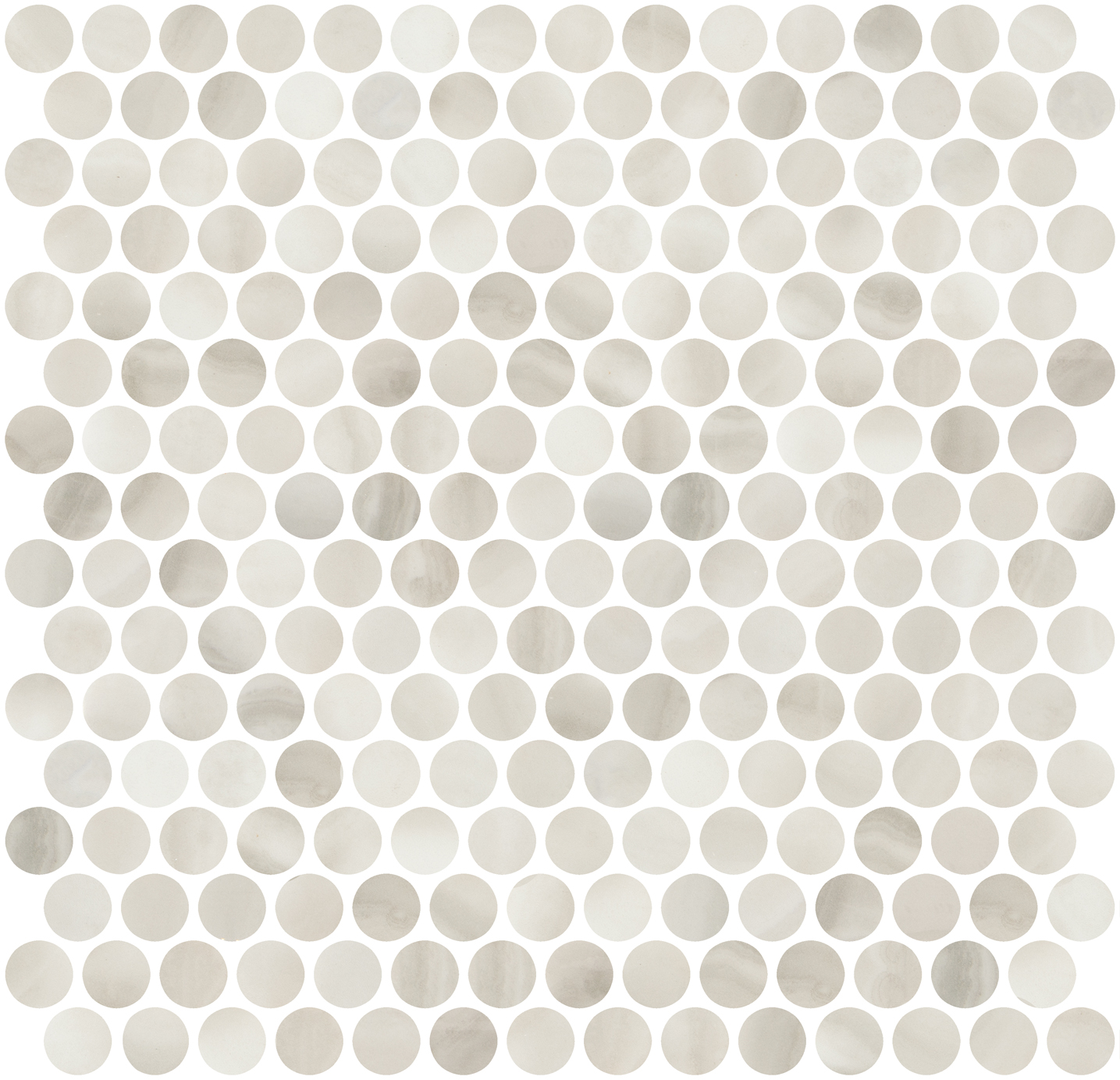 Mosaïque en verre, 19 mm, en gris clair avec une finition brillante-mate. Parfaite pour les sols résidentiels ou les murs extérieurs, un design unique inspiré par l'élégance naturelle de l'onyx. De la série PENNY ONYXA.